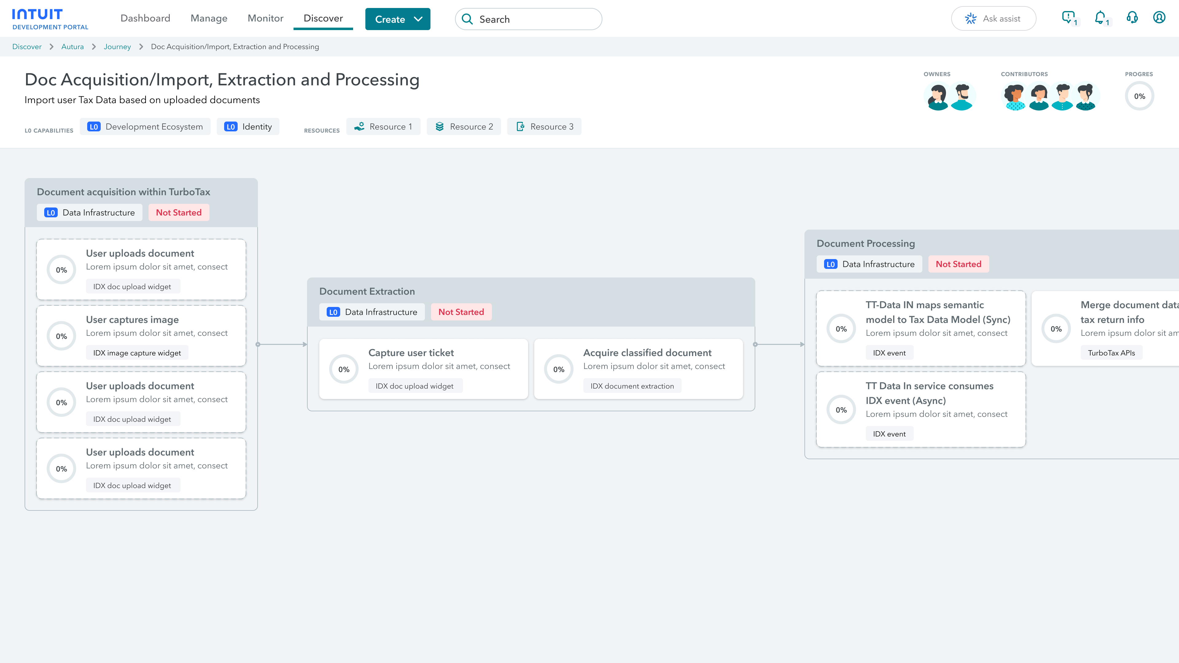 Unify the navigation of product-based (QuickBooks) and service-based (Intuit Financial Services) APIs. Enhance the discovery process for third-party (3P) developers, allowing them to efficiently locate and understand key APIs in a matter of minutes.